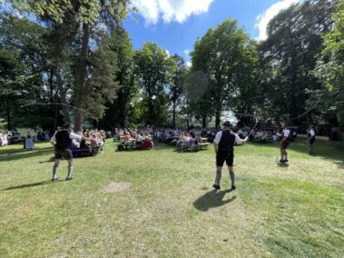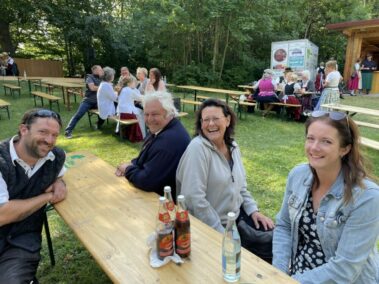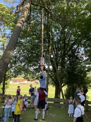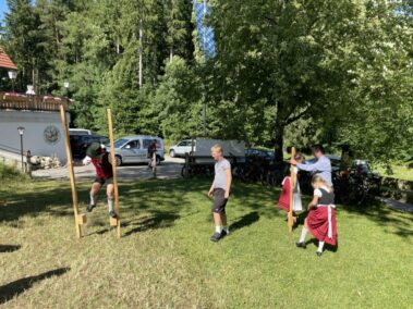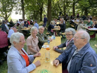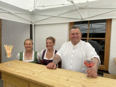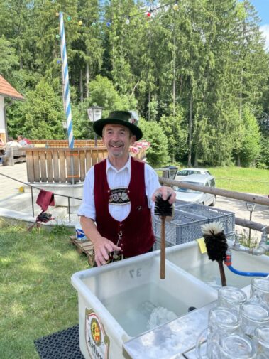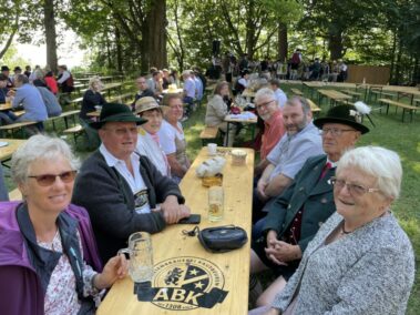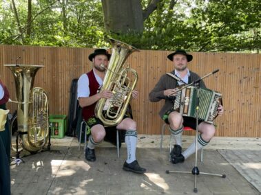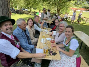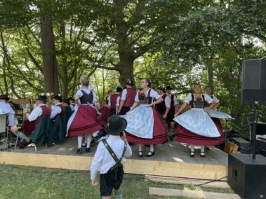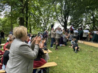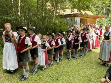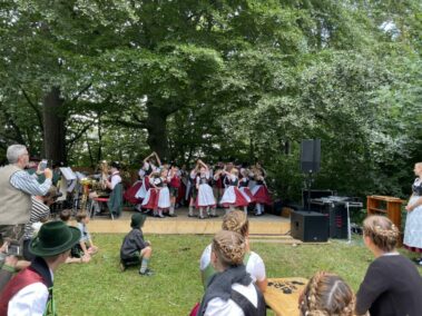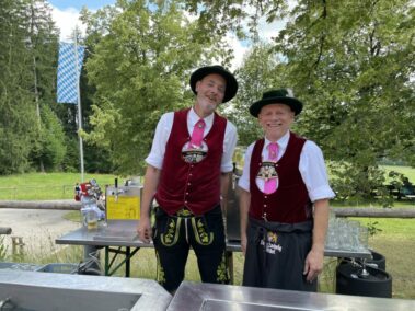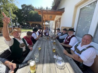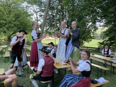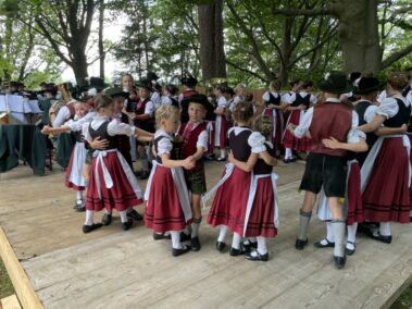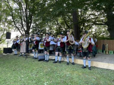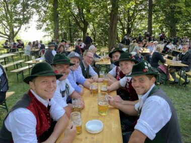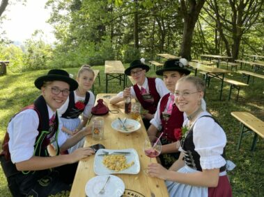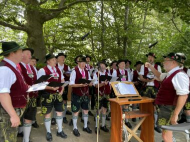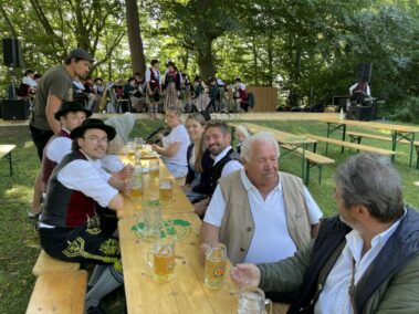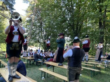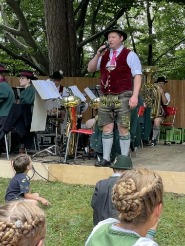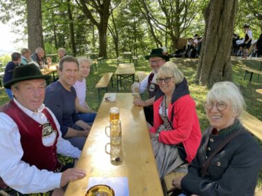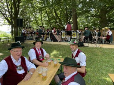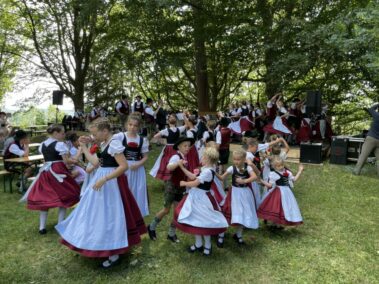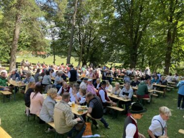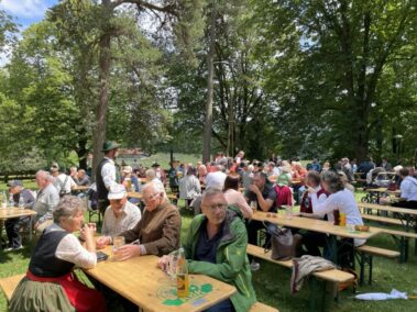 Ab den ersten Klängen der Stadtkapelle Schongau strömten die Gäste auf die Wiese neben dem Trachtenheim auf dem Helgoland und ließen es sich gutgehen. Das war auch nicht schwer, denn die „Schloßbergler“ hatten wie jedes Jahr dafür gesorgt, dass kein Wunsch offenblieb: Leckere selbstgemachte Kuchen und Torten, deftige Brotzeiten, süffiges Bier und erstmals eine Cocktail-Bar deckten das kulinarische Angebot ab. Dazu die grandiose musikalische Unterhaltung durch die Stadtkapelle Schongau und des Männerchors der „Schloßbergler“, und natürlich die schneidigen Auftritte der Plattlergruppen des Trachtenvereins und der Goaßler aus Steingaden. Die Kleinen konnten sich an verschiedenen Spielestationen austoben, so dass auch bei diesen zu keinem Zeitpunkt Langeweile aufkam. Ein Fest für die ganze Familie eben. Bis in die Abendstunden genossen die Gäste das rundum gelungene Waldfest, ratschten, lachten und feierten mit den Schongauer Trachtlern.
