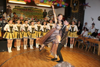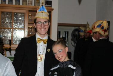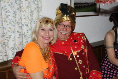 Das sah auch das derzeitige Schongauer Prinzenpaar „Prinzessin Anja vom Castillo der Sprachkünste“ und „Prinz Stephan vom Chateau der edlen Tropfen“ so, die der Tradition ihrer Vorgänger folgten, und eine lustige Rede für und über die „Schloßbergler“ vorbereitet hatten. „Ihr Trachtler und die SFG habt´s ja schon lang fusioniert, und man sieht, dass des super funktioniert“, spielten sie darauf an, dass Einige bei beiden Vereinen aktiv sind, und im Trachtenheim auch zeitweise das Gardetraining stattfindet. Deshalb ihr Vorschlag einer Fusion, dann unter dem Namen: Schloßbergler Faschingsgesellschaft. Und einen passenden neuen Schlachtruf übten sie auch gleich mit allen Gästen: „Lech-Gau!“
