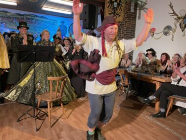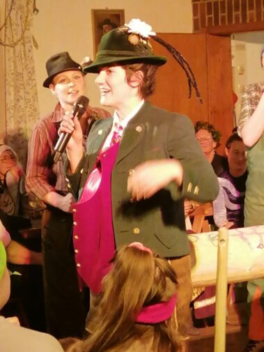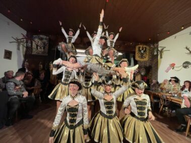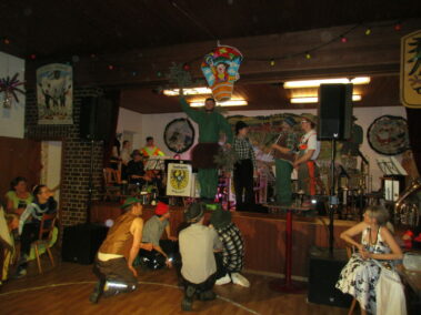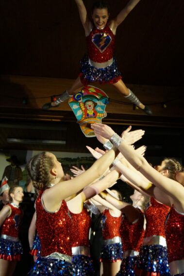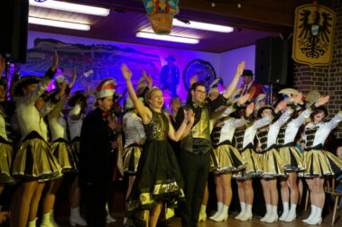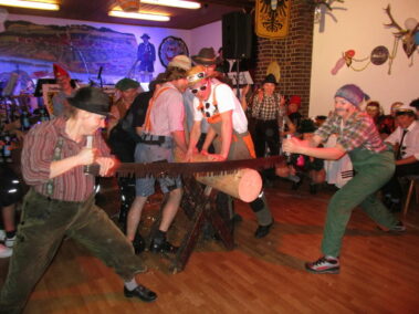 Diese wurde nur drei Mal geräumt: Bei den Auftritten der Schongauer Faschingsgesellschaft mit Prinzenpaar, Elferrat und Garde, die mit einer netten Rede und natürlichen dem phänomenalen Gardemarsch und dem Showtanz zu späterer Stunde für wahre Begeisterungsstürme des Publikums sorgte. Einen Angriff auf die Lachmuskeln gab es dann bei der Einlage der Plattlergruppe. Diese hatte sich wieder was ganz Besonderes einfallen lassen, dieses Mal mit dem Thema „Maibaum“, inklusive Watschn-Plattler, „Bauer sucht Baum“ und Burschen-Plattler mit Mädels. Da liefen die Lachtränen in Strömen über die fantasievoll geschminkten Gesichter.