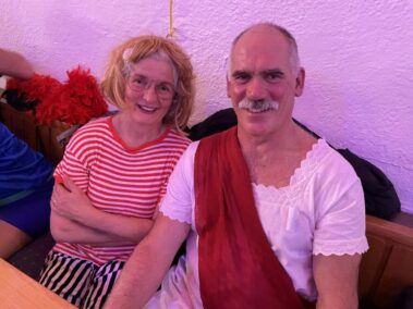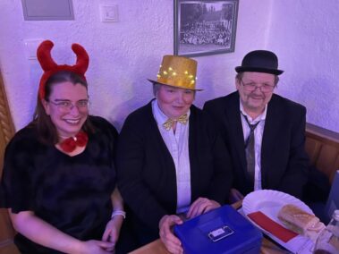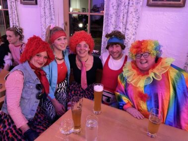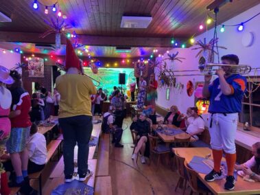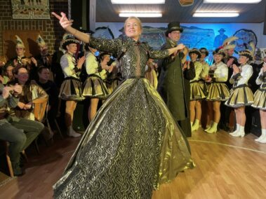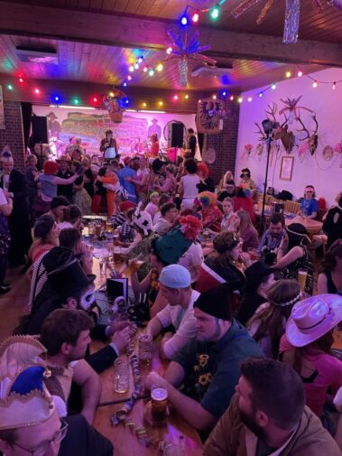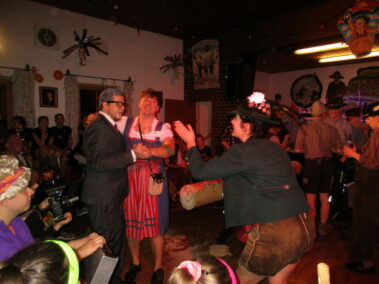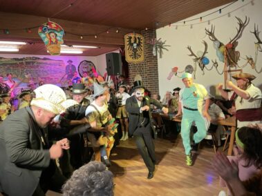 Toll, toller, Trachtenkranzl: Der Faschingsball der „Schloßbergler“ Schongau war auch heuer wieder ein voller Erfolg. Bis auf den letzten Platz war das Trachtenheim auf dem Helgoland besetzt. Wobei: Besetzt war es immer nur kurz, denn die zahlreichen Gäste aus Schongau und Umgebung saßen nicht gern. Sie tanzten lieber zur super Stimmungsmusik der Stadtkapelle Schongau, die ab dem allerersten Ton die Maschkerer auf die immer bumsvolle Tanzfläche zog.