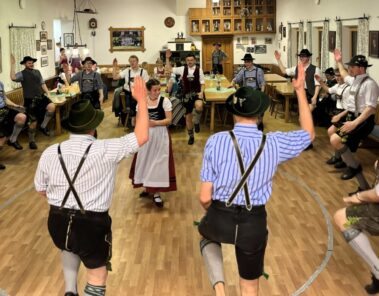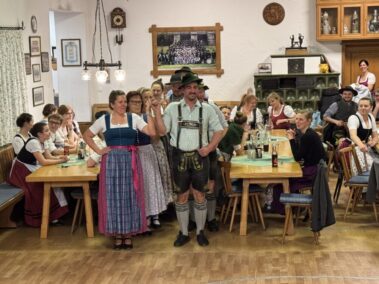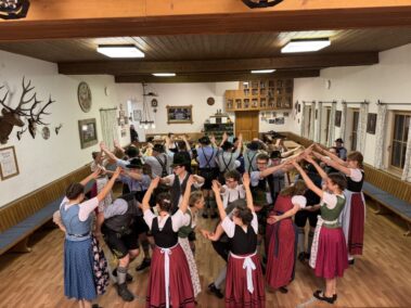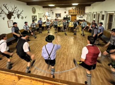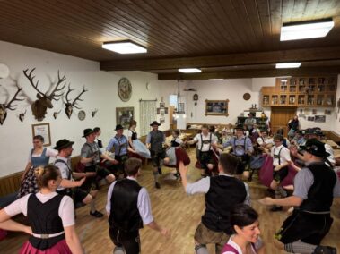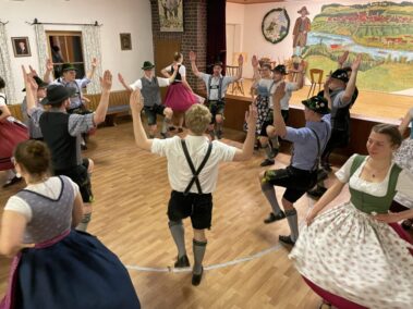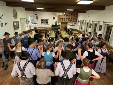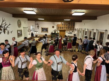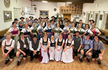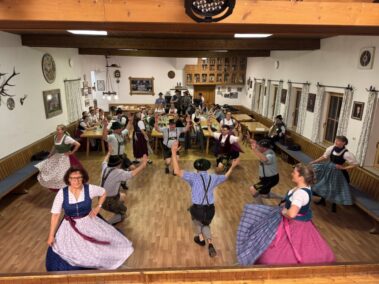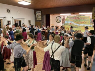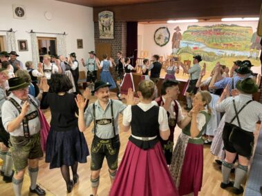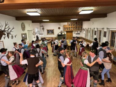 Zu einer gemeinsamen Plattlerprobe von Aktiven und ehemaligen Mitgliedern der Plattlergruppe hatten die Vorplattler des Trachtenvereins „Schloßbergler“ Schongau, Benedikt und Ferdinand Bader, geladen. Ganz viele der ehemaligen Plattler und Dreherinnen sind der Einladung gefolgt, und haben bewiesen, dass sie nichts verlernt haben. Der Auftanz und das „Mühlradl“ sitzen noch genauso, wie der Vereinsschlag oder der „Wendlstoaner“. Und auch bei der Geselligkeit ist keiner aus der Übung gekommen.