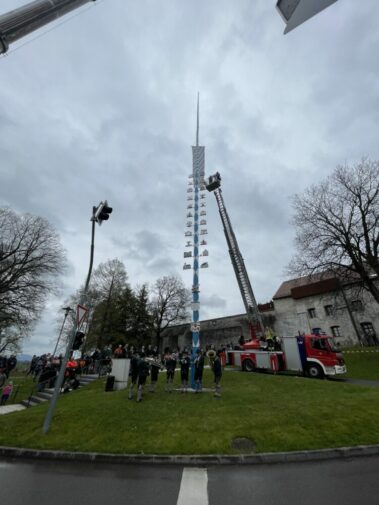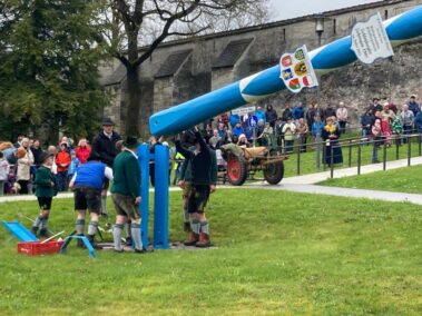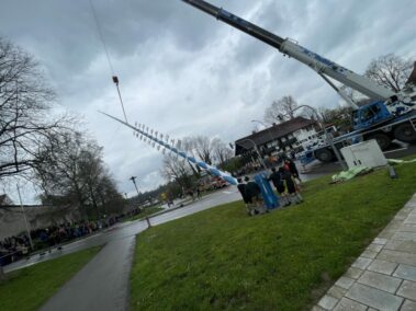 Jetzt steht er: Unser prächtiger Maibaum mit seinen stolzen 34 Metern und 25 wunderschönen Schildern. Bis es soweit war, ist natürlich viel passiert.