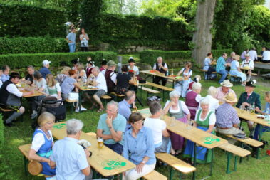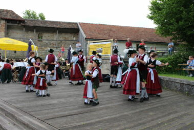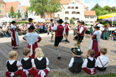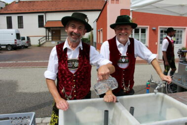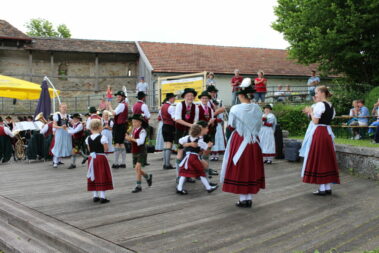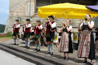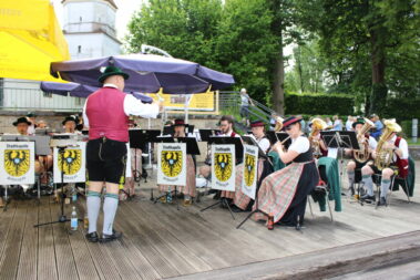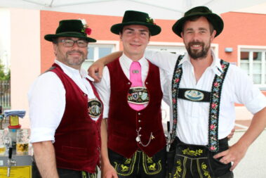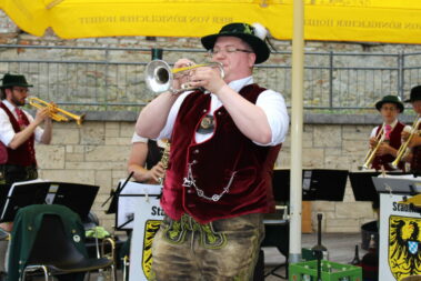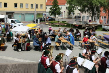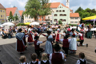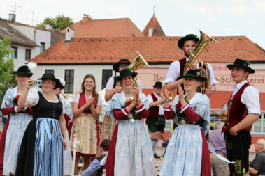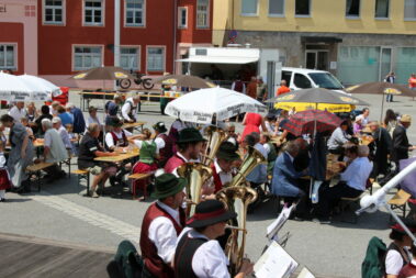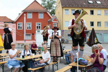 Ein riesiges Glück hatte der Trachtenverein Schloßbergler Schongau: Genau rechtzeitig zum Start des Stadtfestes verzogen sich die letzten Gewitterwolken und die Sonne strahlte über dem Bgm-Schaegger-Platz. Beste Voraussetzungen für ein wunderbares Fest mit vergnügter Stimmung bei allen Beteiligten. Für das leibliche Wohl war bestens gesorgt, die Plattlergruppen der Schloßbergler zeigten unter viel Applaus, was sie können und die Stadtkapelle Schongau spielte zünftig auf – wenn auch ohne Anlage, denn diese konnte vor dem Gewitter nicht rechtzeitig in Sicherheit gebracht werden und war somit nicht mehr eisatzfähig. Das tat aber weder der Stimmung noch dem grandiosen Spiel der Musiker einen Abbruch. Ebenso wenig wie die zwei kleinen Schauer während des Stadtfestes. Denn dazu machte es allen, den Veranstaltern und den zahlreichen Gästen, einfach viel zu viel Spaß, endlich wieder gemeinsam feiern zu können.