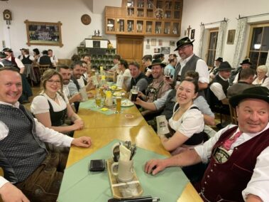 Diesen gab es dann auch nur ein kleinen Gläsern zu kosten, denn sonst wäre der Abend eventuell zu früh zu Ende gegangen. Und das wäre wirklich schade gewesen, denn im Trachtenheim auf dem Helgoland herrschte beste Stimmung, die der „Schloßbergler“ Männerchor mit seinen tollen Liedern und die „Senfkristall Musik“ mit ihrer wunderbaren Stücken noch zusätzlich anheizten. Wenn es der Terminkalender der „Schloßbergler“ zulässt, war das garantiert nicht das letzte Starkbierfest.