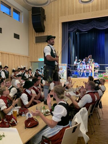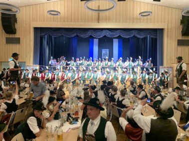 15 Plattlergruppen aus dem gesamten Lechgau zeigten, dass sie nichts verlernt haben. Ob beim Bänklertanz, bei der Kreuzpolka, dem Sterntanz und den verschiedensten Plattlern – nicht nur die Freude, endlich wieder auftreten zu können, war groß, sondern auch das Können aller überzeugte. „Es ist so schön, euch alle hier zu sehen“, begrüßte Gauvorstand Franz Multerer sichtlich gerührt „seine“ Trachtler, die die gesamte Gemeindehalle besetzt hatten, und ab der ersten Minute für eine grandiose Stimmung sorgten. Zwischen den Tänzen und Plattlern schnalzten die Goaßler aus Steingaden unter großem Applaus in die Trachtler-Ohren. Das große Finale gab es dann mit dem traditionellen Burschenplattler. Ein Gänsehautmoment, bei dem Denklingens Bürgermeister Andreas Braunegger kurzzeitig um die Statik seiner Halle bangen musste.