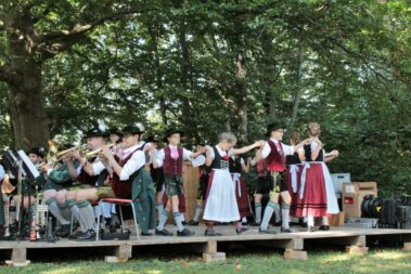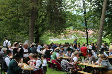 Über 300 Gäste strömten auf die Wiese beim Trachtenheim auf dem Helgoland, um zusammen zu essen, zu trinken und zu ratschen. Und natürlich um sich bestens unterhalten zu lassen. Die Stadtkapelle Schongau sorgte für den perfekten musikalischen Rahmen, die Plattler der Schloßbergler, Jugend wie Aktive, zeigten, dass sie nichts verlernt haben, genauso wie die Goaßler aus Steingaden. Und vor allem merkte man allen an, dass sie einfach unglaublich Lust auf dieses Fest und ihre Auftritte hatten. „Es ist so schön, dass wir dieses Fest machen können, und dass ihr alle gekommen seid, um mit uns zu feiern“, freute sich Vorstand Markus Wölfle.
