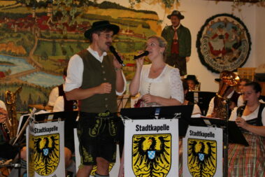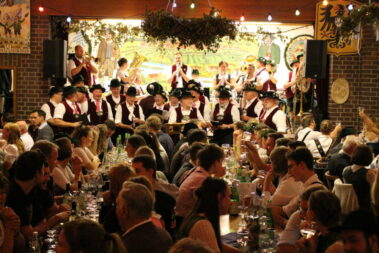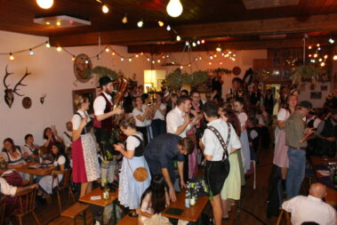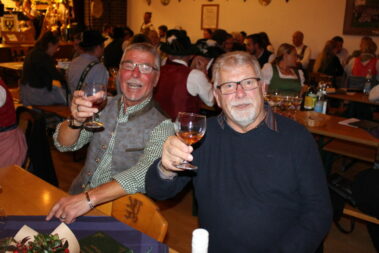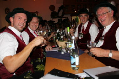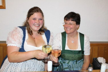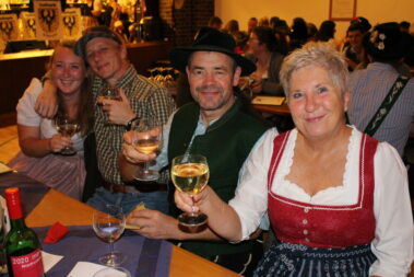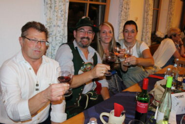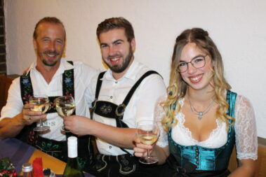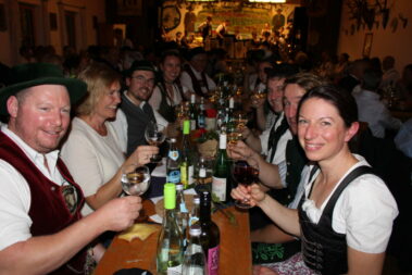 Ein Garant der guten Laune ist zurück: Das Weinfest des Trachtenvereins Schloßbergler Schongau war, nach drei Jahren Pause, ein voller Erfolg. Bis auf den letzten Platz war das Trachtenheim auf dem Helgoland mit bestens aufgelegten Gästen besetzt. Und diesen wurde bis in die späten Abendstunden ein wirklich tolles Programm geboten: Beste musikalische Unterhaltung mit der Stadtkapelle Schongau und dem Männerchor der Schloßbergler, dazu kulinarische Köstlichkeiten und, selbstverständlich, erlesene Weine. Einfach Beste-Laune-Garantie!